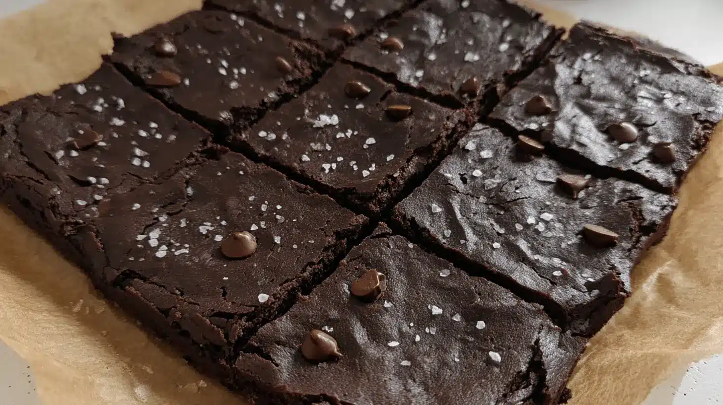 - Allow the brownies to cool completely, then top with flaky sea salt before serving.