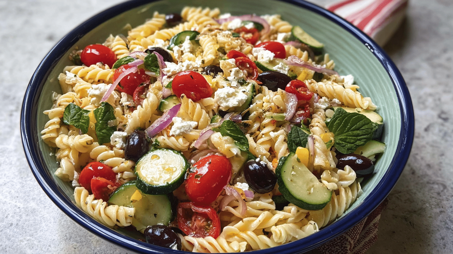 This Mediterranean Pasta Salad is a simple, refreshing dish featuring tender pasta, crisp vegetables, and a zesty homemade dressing, perfect for a light meal or a crowd-pleasing side dish.