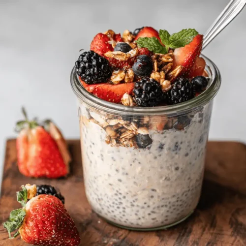 - Fruity: Mash in a ripe banana before chilling for banana bread oats, or swirl in berry compote for a vibrant berry version. Apple-cinnamon is always a comforting choice.