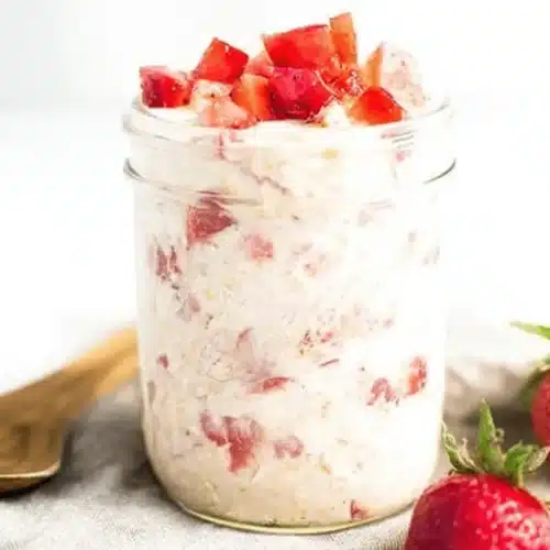 - Top and Serve: Finally, top your ready-to-eat strawberry overnight oats with additional fresh chopped strawberries. This adds a beautiful burst of fresh fruit and enhances the “shortcake” appeal. Serve chilled and enjoy your effortless, delicious breakfast!