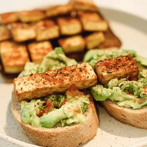Finally, it’s time to assemble your delicious creation. Spread the creamy avocado mixture evenly and generously over each piece of toasted bread. Then, top the avocado with the spicy, crispy tofu pieces. Serve your amazing tofu avocado toast immediately and savor every bite!